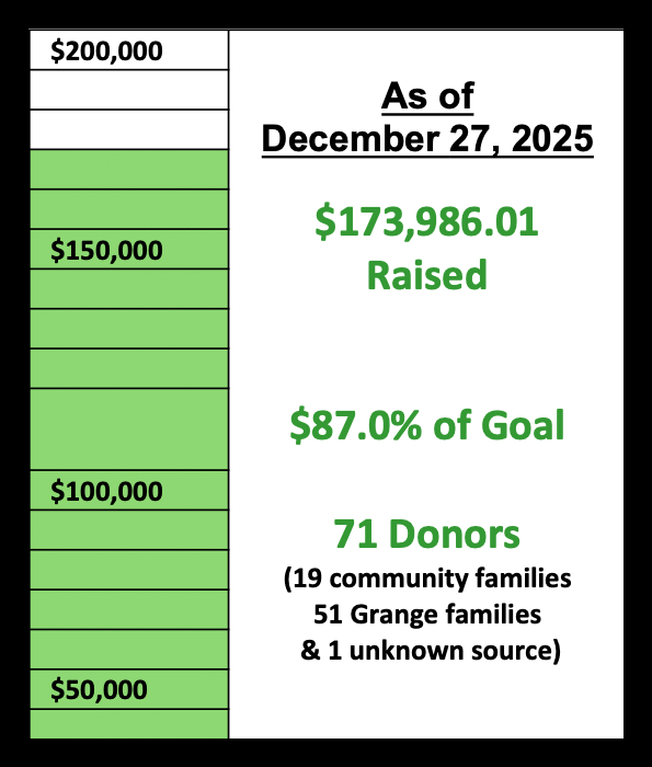 Bids for our Accessibility Project came in $200,000 higher than the amount we had confidently budgeted for and expected. After judicious consideration and some more scaling back, the decision was made to start the Project immediately before the rainy season began in earnest, before our permit expired, and before building codes got even more restrictive. Two major factors contributed to this decision. First, a community member stepped forward offering a loan to bridge any financial deficiency at the completion of the Project. Second, we had faith that our community and Grange members would step forward to donate generously to raise the needed $200,000 because they value having a place to gather that is safe, accessible, and local.